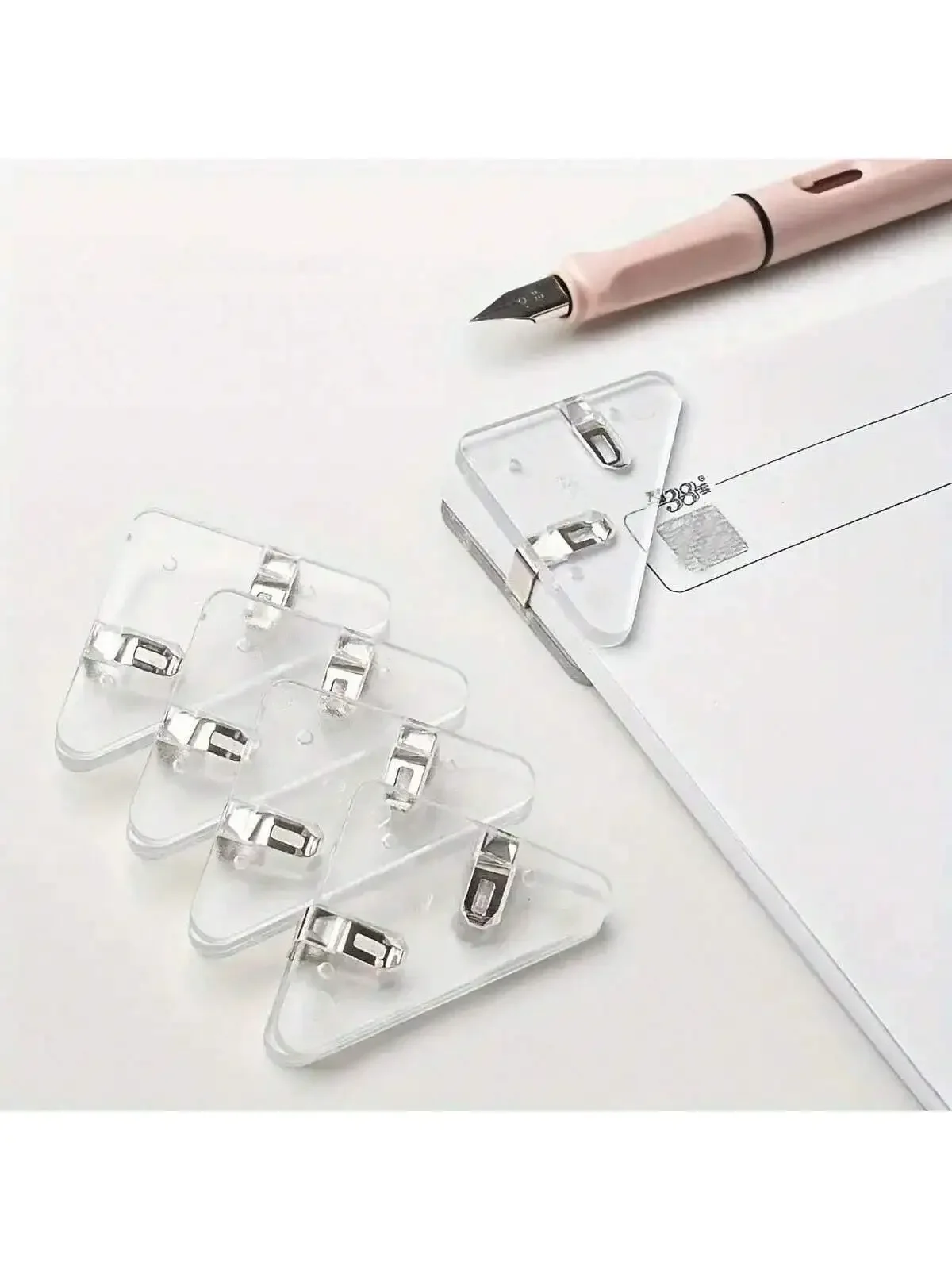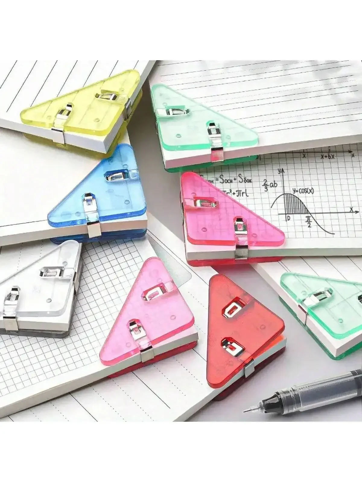5pcs Triangle Transparent File Edge Clip Metal Firm Office School Supplies, Multiple Colour Test Paper Book Anti-Roll