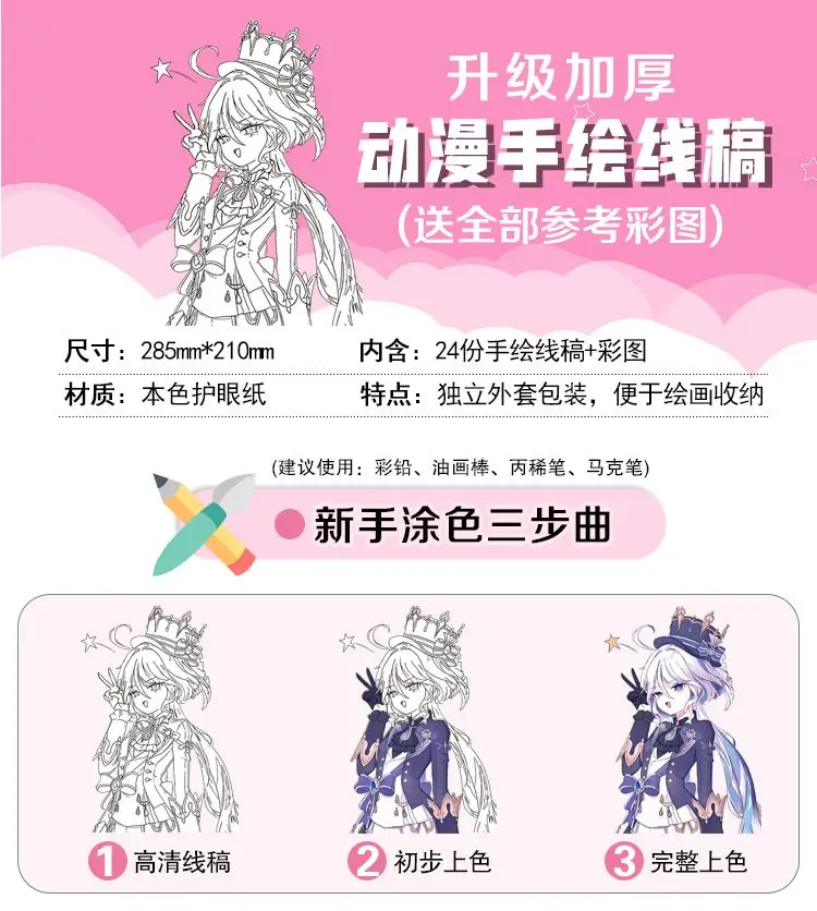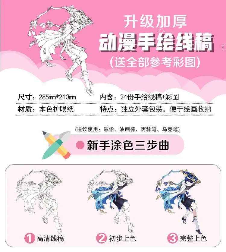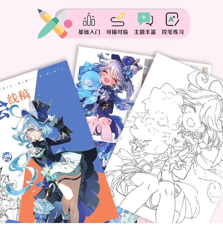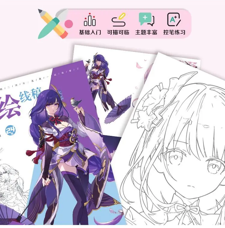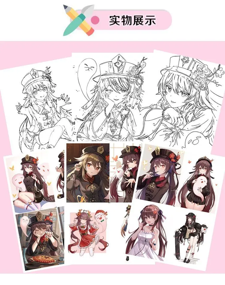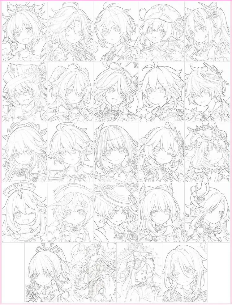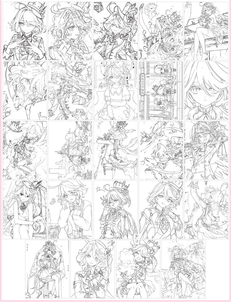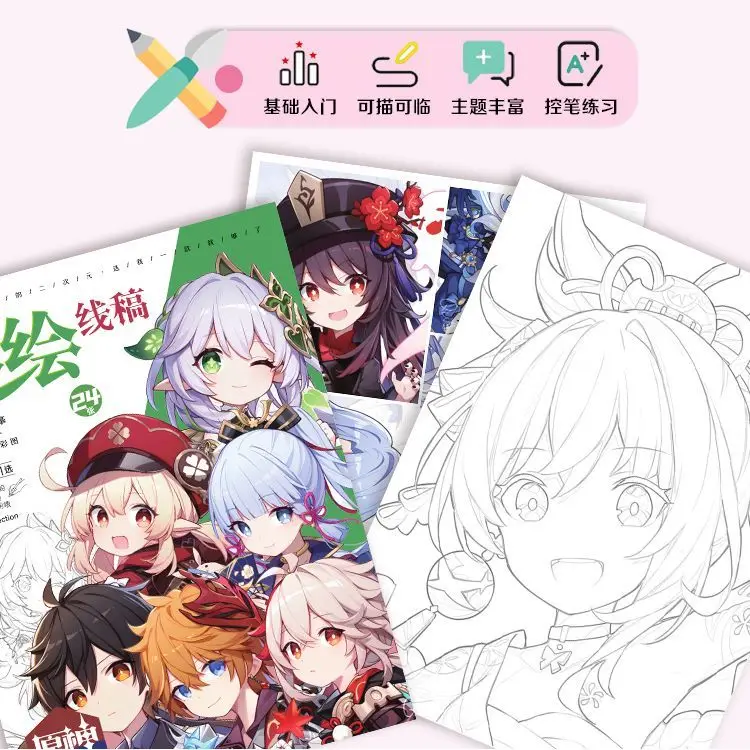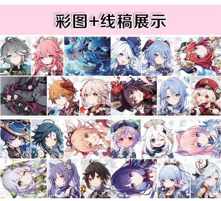 Genshin Impact coloring books for kids Game anime Character Collection 24 sheets hand drawn sketches for copying colouring book