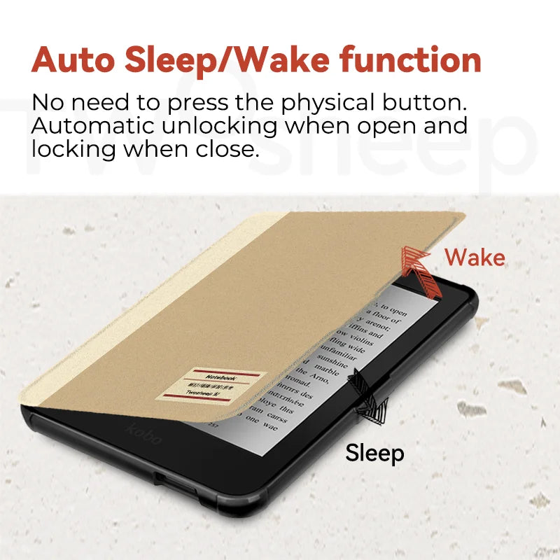 The Kobo Clara Colour/BW auto Sleep/Wake cover can auto wake Kobo Clara Colour/BW up when you open the cover, and put it back to sleep when you close it.